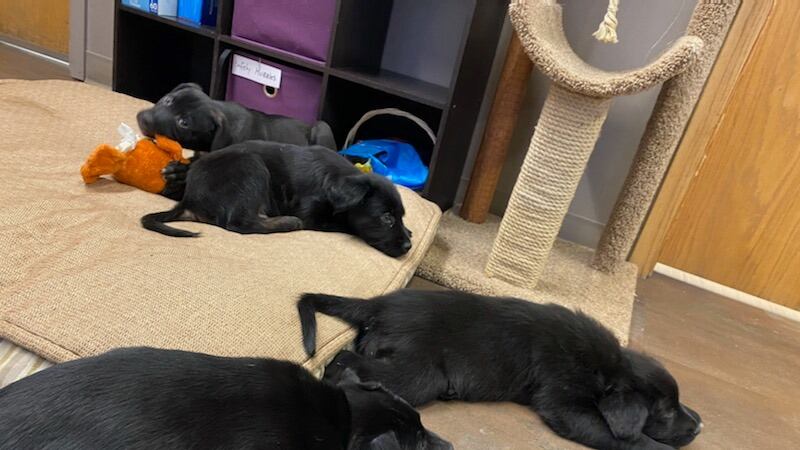 Alaska SPCA Adoption Center Manager Aimee Everett said they are lab, pitbull, cattle dog mixes. All four are males, and they are about 8 weeks old.